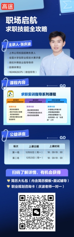 12月3日下午还有高途校招宣讲,优质就业岗位先到先得喽