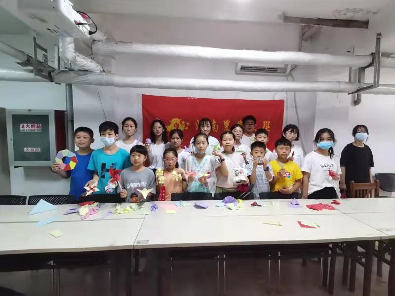 在雷锋站志愿者们的带领下,爱心课堂开展了手工折纸活动。活动开始前,青年志愿者老师向孩子们再三叮嘱安全事项,为活动的安全进行做出了保障。活动中,我院青年志愿者悉心为孩子们提供思路与指导,帮助孩子们在纸上呈现出自己的奇思妙想。青蛙、狐狸、千纸鹤样样精美,青年志愿者们利用一件件折纸作品带领大家进入纸艺世界。手工折纸活动的开展,不仅平衡了小孩子们的学习生活,更是增强了他们的动手想象能力,使小朋友们体验到了成就感与满足感,促进了他们身心健康发展,活动在欢声笑语中圆满结束。