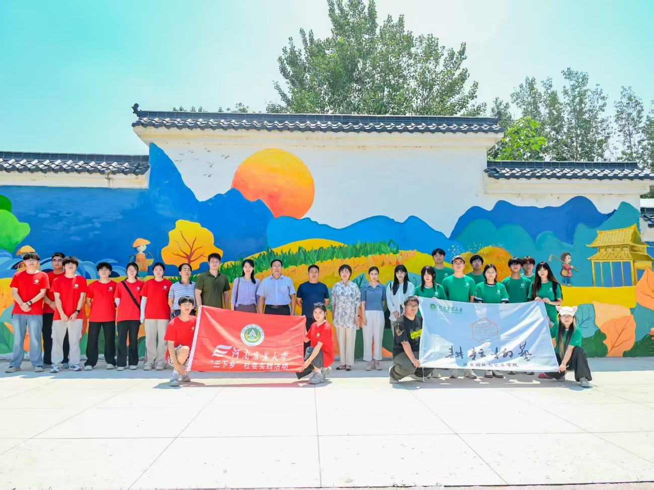 为进一步探寻传统文化的深厚底蕴,组织引导广大青年学生在社会实践中受教育、长才干、做贡献,7月1日至7月7日,风景园林与艺术学院 “艺绘美丽乡村志愿队” 赴周口市扶沟县开展三下乡暑期社会实践墙绘活动。