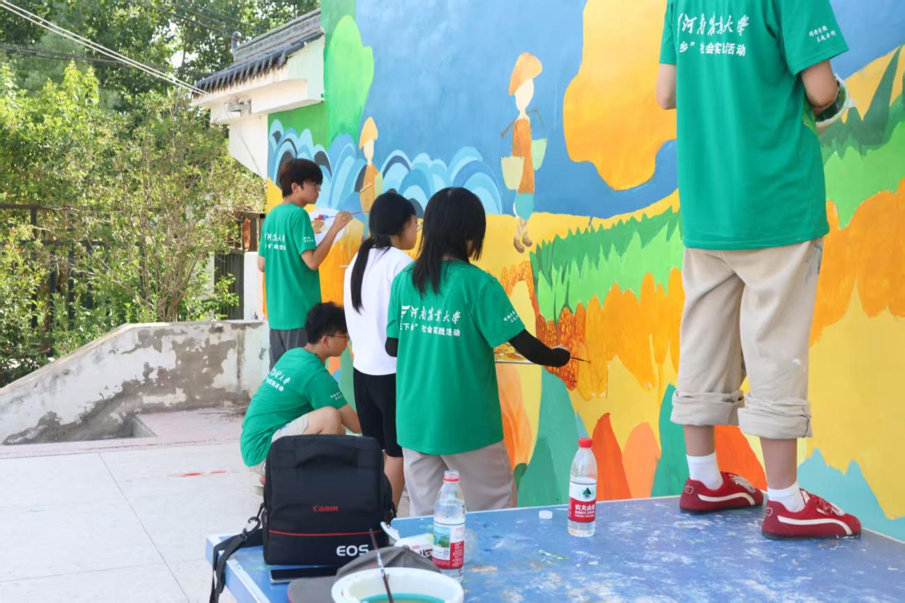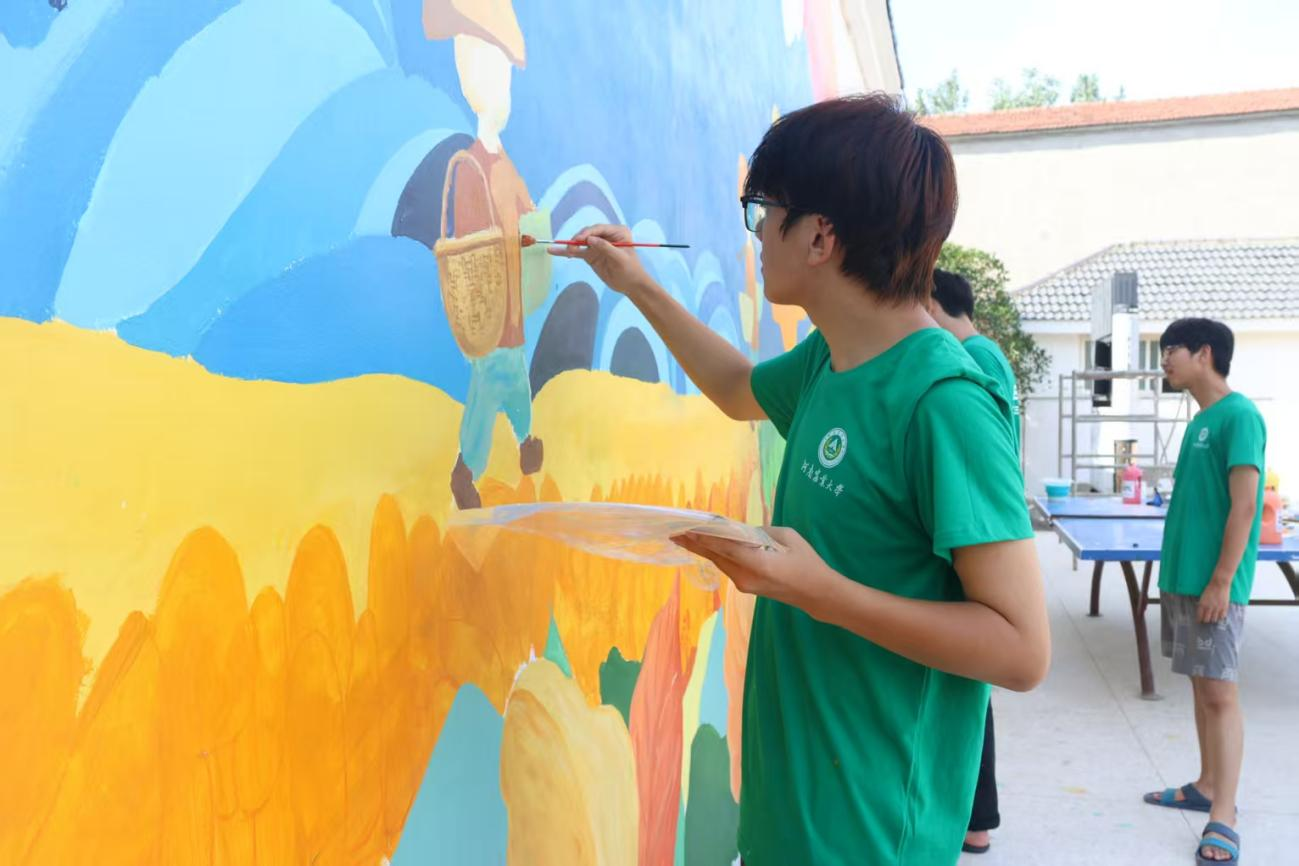 7月4日,风景园林与艺术学院“艺绘美丽乡村志愿队”前往河南省周口市扶沟县韭园镇何家村开展三下乡暑期社会实践墙绘活动。