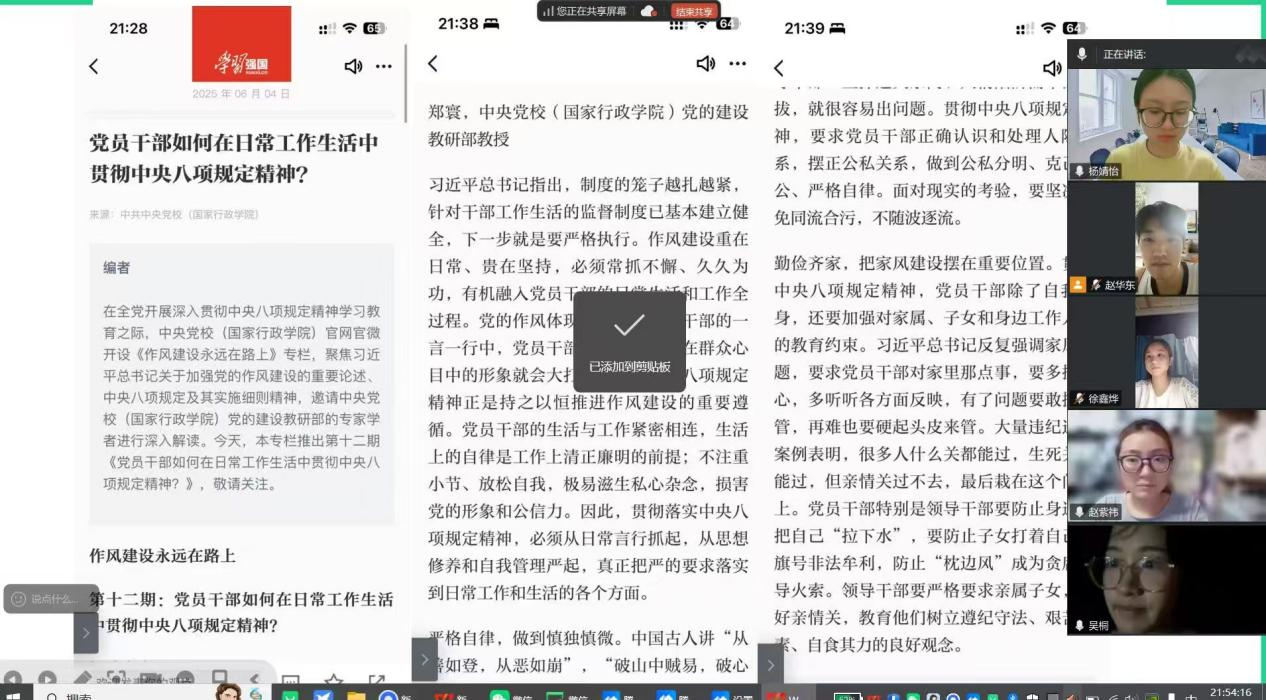 园林专业学生党支部成员分享学习体会