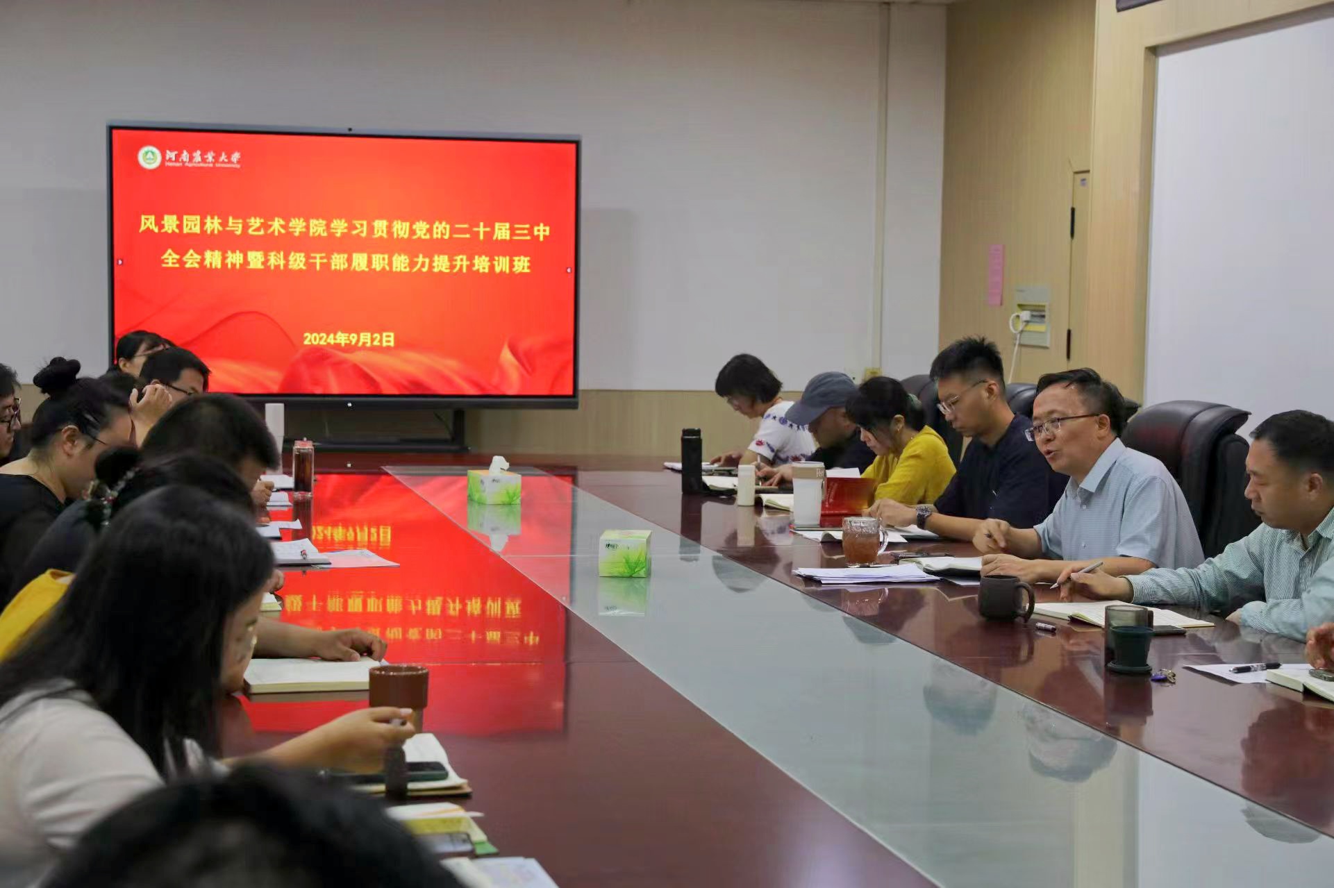 为深入学习贯彻党的二十届三中全会精神,激发广大党员干部担当作为,9月2日,我院于文化路校区举办学习贯彻党的二十届三中全会精神暨科级干部履职能力提升培训班。院班子成员及全体中层干部参加本次培训。