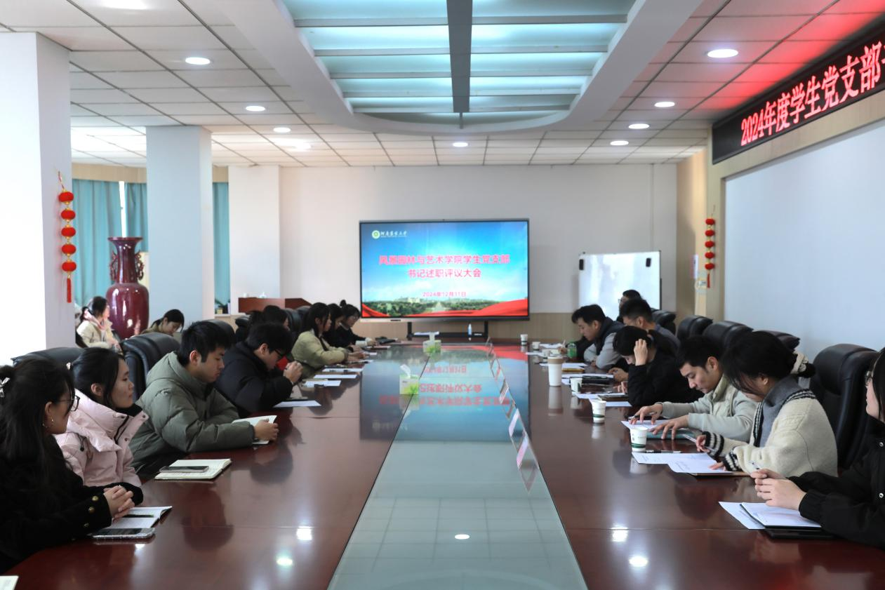 12月31日,风景园林与艺术学院2024年度学生党支部书记述职评议会在13号楼第一会议室召开。学院党委副书记赵九阳、团委书记徐珂、正科级组织员李雨澍、团委副书记芦嘉俊、党政办副主任史玥、2024级辅导员蔚洪波、研究生负责人张兵及各学生支部书记、支委委员参加了会议。