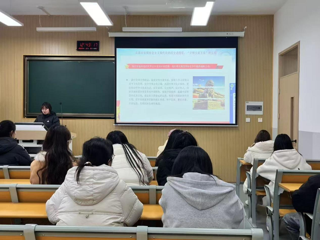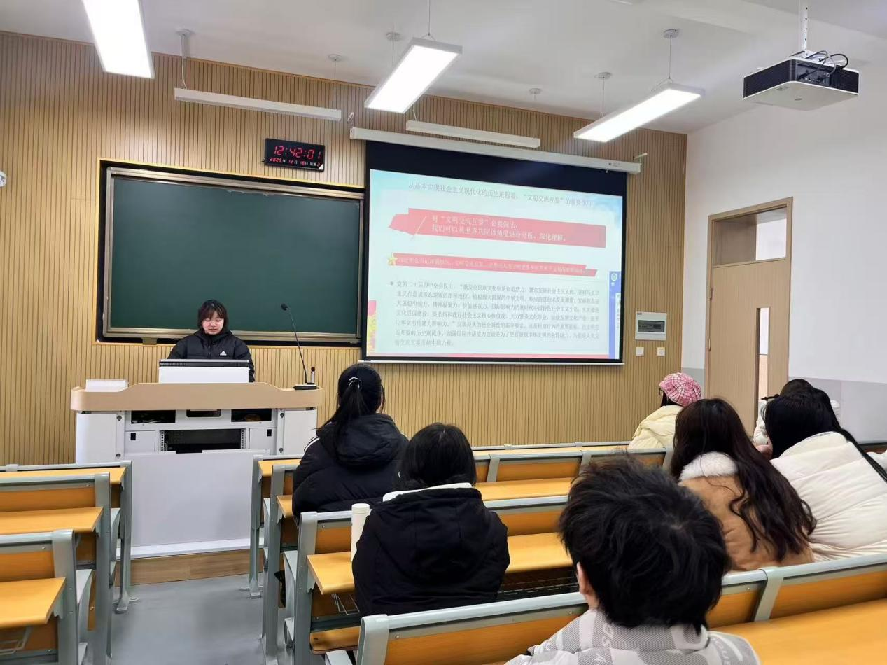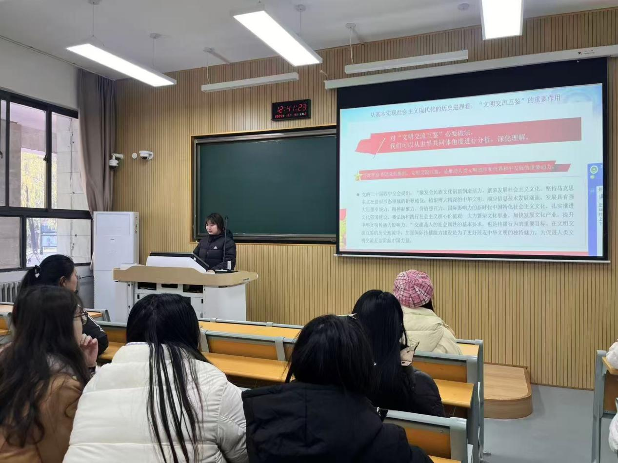 十二月,党日活动以“守正创新传文脉,互鉴赋能耀中华”为主要方向,从理论学习和实践活动两方面展开,各支部积极开展相关活动,全体党员积极投身 “守正创新传文脉,互鉴赋能耀中华”的生动实践,深入学习贯彻习近平新时代中国特色社会主义思想,紧扣“守正创新传文脉,互鉴赋能耀中华”的核心导向,引导全体党员在文明交流中凝聚共识,在文化创新中践行担当,有效推动了党建工作与学科发展同频共振。