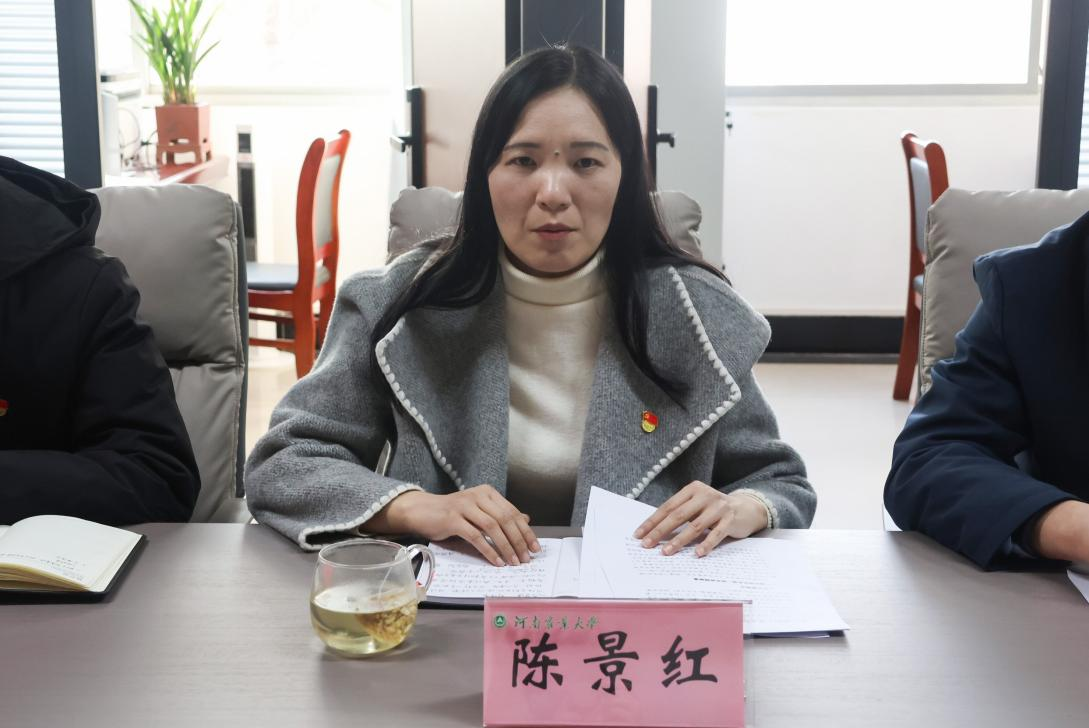 陈景红作最后点评总结。她在肯定各党支部2025年党建工作实效与成绩的同时,指出各党支部在政治引领上“三会一课”基本制度落实到位、组织生活与专业特色深度融合、党员先锋模范作用充分彰显。她也客观指出当前工作中还存在着理论学习不够深入、党建品牌特色不够鲜明、工作方式方法创新性不足等问题。最后,针对2026年的党建工作,她提出了三点要求:一是要强化政治引领,筑牢思想根基,要坚持不懈用党的创新理论武装头脑、指导实践,坚持学思用贯通、知信行统一,把理论学习融入日常、抓在经常,切实将学习成果转化为推动工作的具体思路、务实举措和实际成效,不断巩固全院团结奋斗的共同思想基础。二是要提升大局意识,强化责任担当,党员要胸怀学院发展全局,持续服务学院发展事业,不断发挥先锋模范作用,增强服务意识,深入师生解决实际问题;在学院重大任务和急难险重关头,要挺身而出、冲锋在前,以实际行动团结带领师生,共同推动学院各项事业高质量发展。三是要抓好队伍建设,凝聚奋斗合力,坚持以“严管厚爱”相结合的原则,完善党支部制度建设,强化党员教育管理,引导各支部结合自身实际,系统打造“一支部一特色”的党建体系,为学院各项事业平稳有序、高质量发展提供坚实的组织保障和队伍支撑。