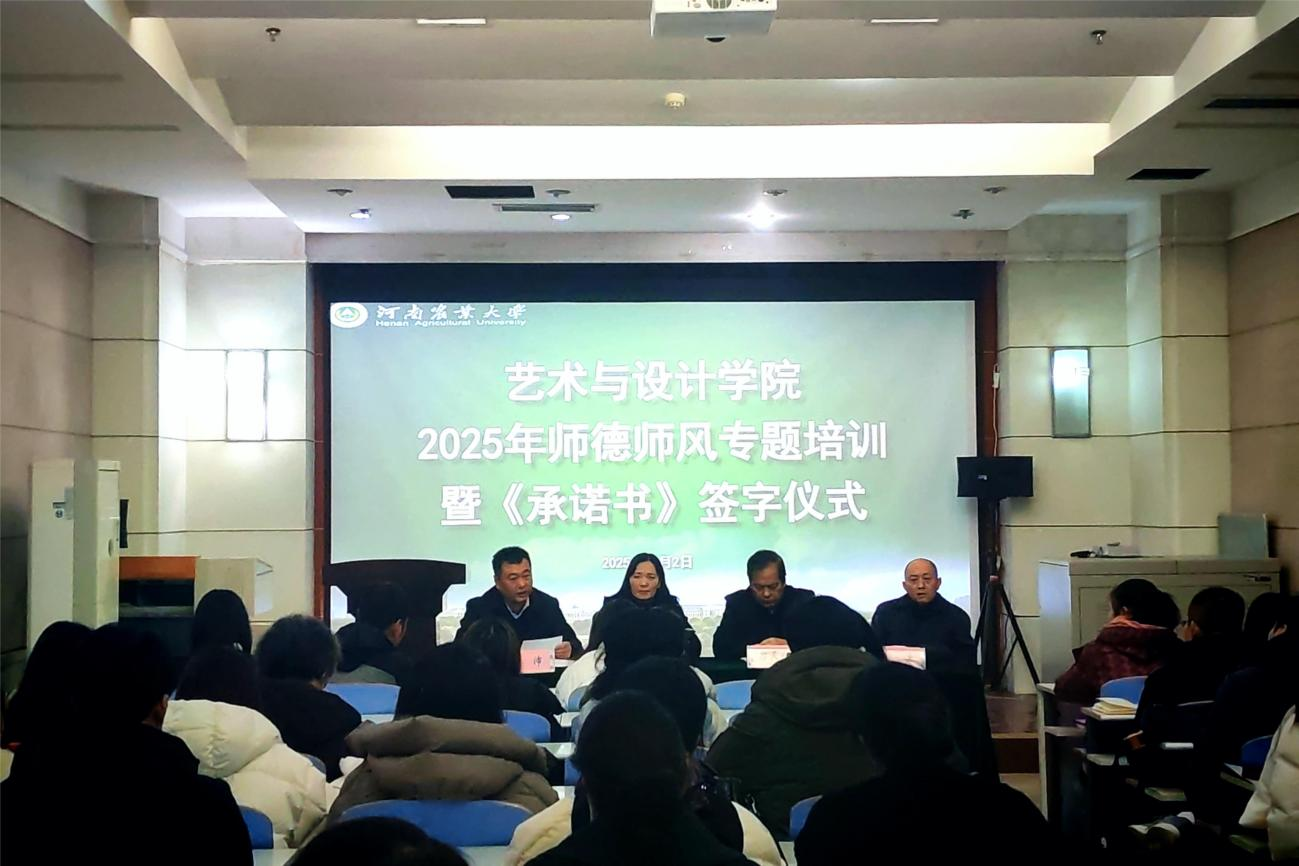 会上,李沛领学了《河南农业大学师德承诺书》,全体教职工郑重签订了师德师风承诺。
