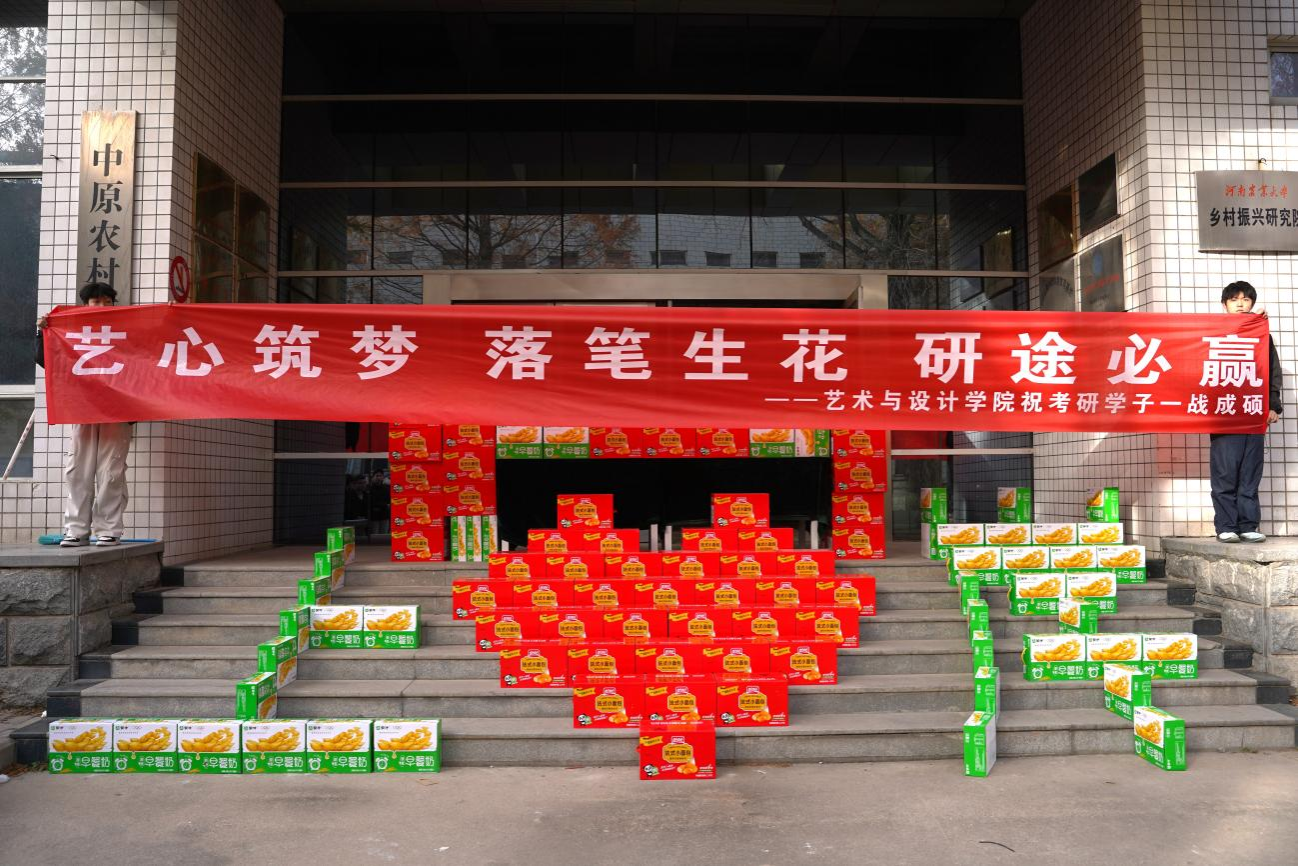 在冬季送温暖时,院党委书记陈景红携学院教师代表在校史馆门口为考研学子们发放精心准备的考研加油礼包,并现场寄语学子们“艺”心筑梦,落笔生花,沿途必赢。寓意着“包”你稳赢,“牛”运助考的加油礼包承载着学院对学子们的殷切期望与深切关怀,学子们纷纷表示将把这份温暖转化为考研途中的强大动力,用优异的成绩回馈学院。