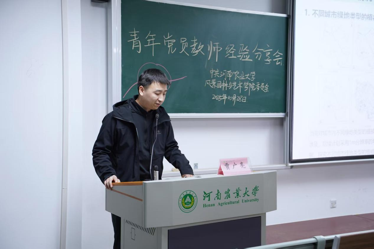 分享会上贾广亮老师以“个人成长与科研实践的双向奔赴”为切入点,结合自身的求学履历,系统分享了科研道路上 “扎根” 的心得。不仅展示了自己研究成果,更坦诚分享了在调研中的挑战与论文撰写时的突破经验。最后结合入党经历强调党员身份是科研路上的 “精神灯塔”,唯有以严谨务实的态度扎根专业,才能在科研中实现个人价值与社会价值的统一。