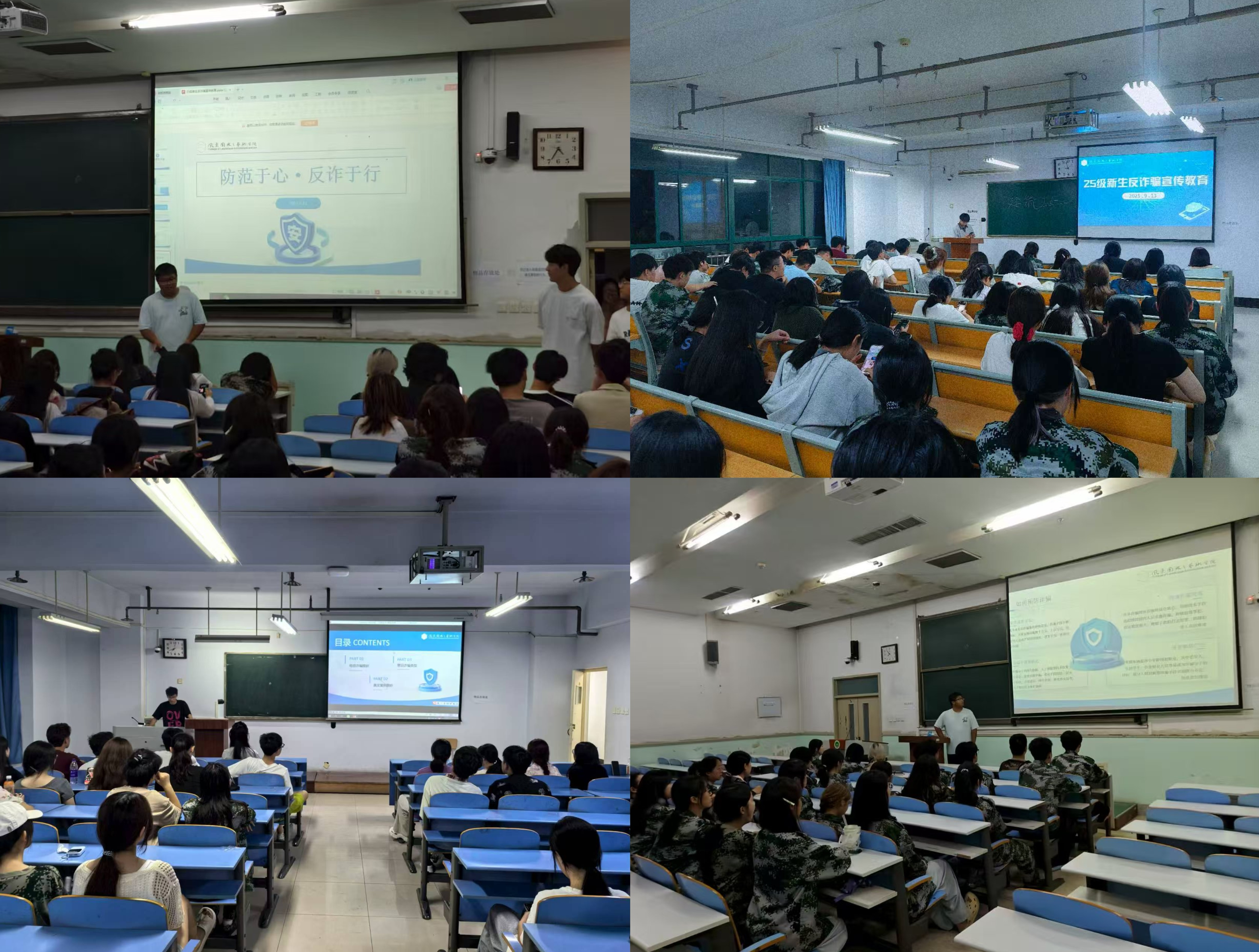 本次班会由各班助理班主任主持。班会形式丰富多样,各班助理班主任对反诈进行讲解,展示了电信诈骗、网络诈骗、校园贷诈骗等多种常见诈骗类型的案例场景,让新生们直观感受诈骗手段的多样性与隐蔽性,结合案例,向新生剖析诈骗分子的惯用伎俩,如利用新生初入校园、社会经验不足的特点,编造各类谎言实施诈骗。同时,详细讲解了防范诈骗的方法,包括核实信息真实性、不随意透露个人隐私、遇到可疑情况及时向老师或学校保卫部门求助等。在互动环节,助班还组织新生进行小组讨论,分享对诈骗的认识和防范心得,大家积极发言,交流热烈。