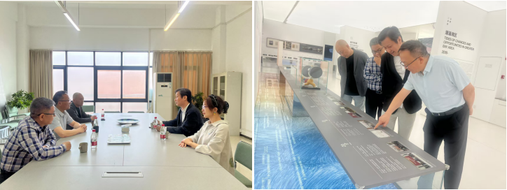 在广州美术学院大学城校区,广美工艺美术学院院长齐喆热情接待了侯永华一行,并陪同参观了广州美术学院校史馆、工艺美术学院多间专业工作室和实验室。齐喆详细介绍了广州美术学院和工艺美术学院发展历程、人才培养、科学研究以及产教融合所取得的成果。双方围绕人才培养、课程特色、实验室建设、学生发展、产学研共建等展开深入交流。双方均表示,希望今后能够寻求更多的交流合作机会,实现优势互补,共同提高。