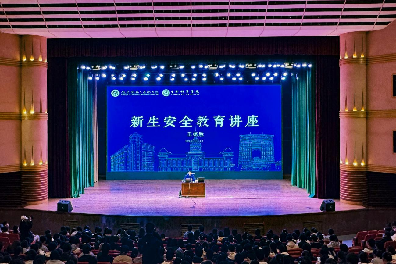 为进一步做好学院安全管理工作,引导我院新生树立安全防范意识,11月13日晚,我院与生命科学学院特邀河南农业大学保卫处副处长王德胜于文化路校区大礼堂开展新生校园安全教育专题讲座,我院党委副书记赵九阳、生命科学学院党委副书记张世昌出席,双方学院2024级全体新生参加了此次讲座。