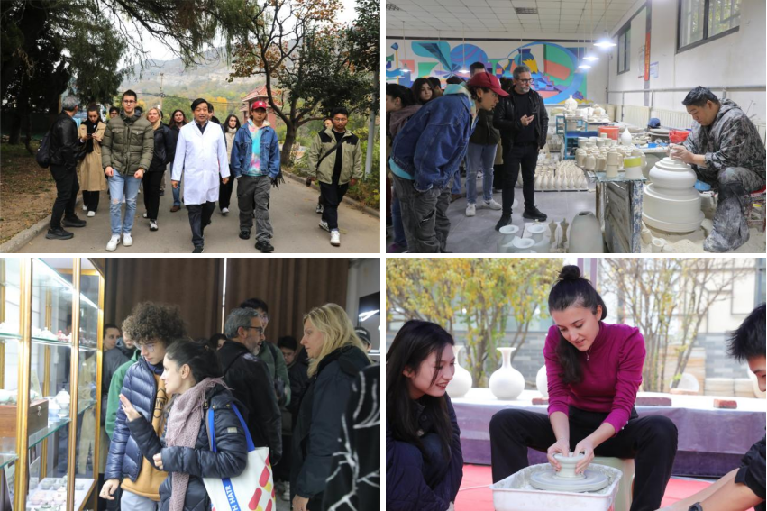 下午,我校艺术系教师以“中国陶瓷艺术与绞胎瓷”为题,通过青花瓷和粉彩瓷等具有代表性的瓷器种类,引申了中国瓷器的历史与文化,深入探讨了瓷器制作工艺的细节,展现了中华技巧的精湛与精妙。随后,一行人前往当阳峪村绞胎瓷研学基地,在国家级非物质文化遗产绞胎瓷传承人柴战柱大师的讲解下深入了解绞胎瓷的历史和制作工艺。在亲手制作绞胎瓷的过程中,留学生们切身感受到了中国传统陶瓷艺术的魅力,进一步增加了对中国传统文化的热爱。