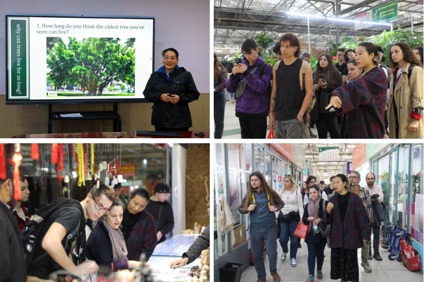 11月8日上午,我校园林系教师于文化路校区就树木的长寿原因开展专题讲座。老师凭借丰富的专业知识将复杂的科学原理讲解得深入浅出。现场气氛热烈,针对树木为什么能够长寿这一问题,营员们各抒己见并展开了深入的探讨。下午,营员们赴陈砦花卉市场进行实地参观。园林系教师介绍了市场中常见的花卉品种,并就花卉的生长、养护、市场价值等进行深入讲解。随后,营员们开启了自由参观之旅,他们穿梭于市场之中,热情地与市场商贩展开沟通与交流,寥寥几句配以肢体动作,便快速熟络了起来,气氛融洽。本次活动,使营员们深入了解了我省本土植物品种与习性,感受到了河南人民的浓浓人情,推动了中外文化之间的相互交流与融合,让不同文化在碰撞中绽放出更加绚烂的光彩。