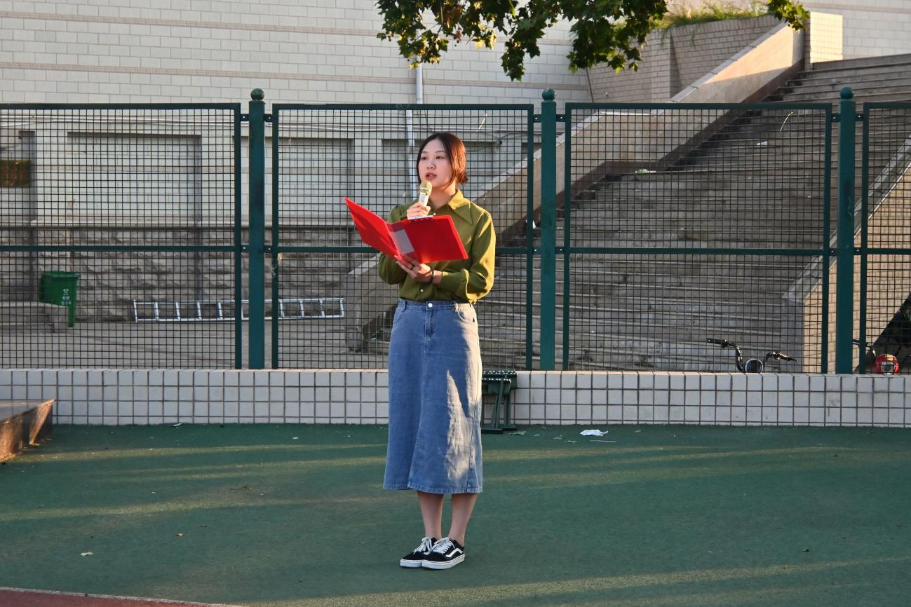 9月23日上午,我院于文化路校区操场举行“喜迎祖国华诞 争当时代青年”升国旗仪式。院党委副书记赵九阳、副院长李永华及学院教师代表出席本次仪式,2023级、2024级全体学生参加本次仪式。升旗仪式由院团委书记徐珂主持。