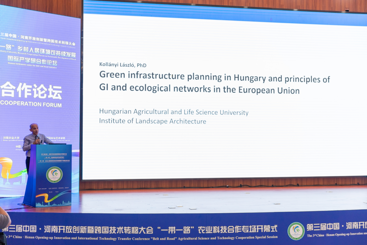 同济大学建筑与城市规划学院客座教授、同济大学千人计划国家特聘教授、美国北卡罗来纳大学夏洛特分校地理与地球科学终身教授、国际期刊Socio-Ecological Practice Research (SEPR)创刊主编象伟宁教授,俄亥俄州立大学工程系统管理专业教授、博士生导师陈倩教授,匈牙利农业与生命科学大学(MATE) 教授、布达佩斯景观、城市规划和园林艺术研究所所长,匈牙利园林遗产基金会创始人兼策展人费科特·艾伯特教授,匈牙利农业与生命科学大学(MATE) 教授、布达佩斯景观、城市规划和园林艺术学院副院长、景观规划与区域发展系系主任、欧盟委员会绿道委员会委员、匈牙利绿色基础设施规划专家古拉利·拉兹洛教授,波兹南生命科学大学工程环境学院院长克劳迪娅·博罗维亚克教授,波兹南生命科学大学工程环境学院玛尔塔·利西亚克-齐利尼斯卡教授,河南农业大学风景园林与艺术学院规划系副主任李华威博士分别做大会主旨演讲。
