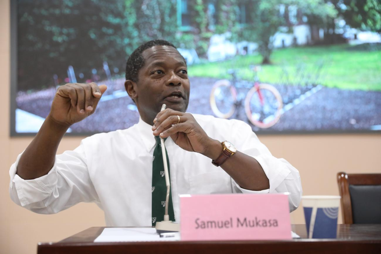 9月6日中午,我院在文化路校区300人报告厅举办国际合作办学宣讲交流会,特邀美国纽约州立大学环境科学与林业学院(SUNY,College of Environmental Science and Forestry)副校长兼教务长萨缪尔·穆卡萨(Samuel Mukasa)和国际教育办公室主任托马斯·卡特(Thomas Carter)莅临会议。学院副院长李永华及教师代表出席会议。我院2021级、2022级园林专业、风景园林专业、城乡规划专业全体学生参加会议。