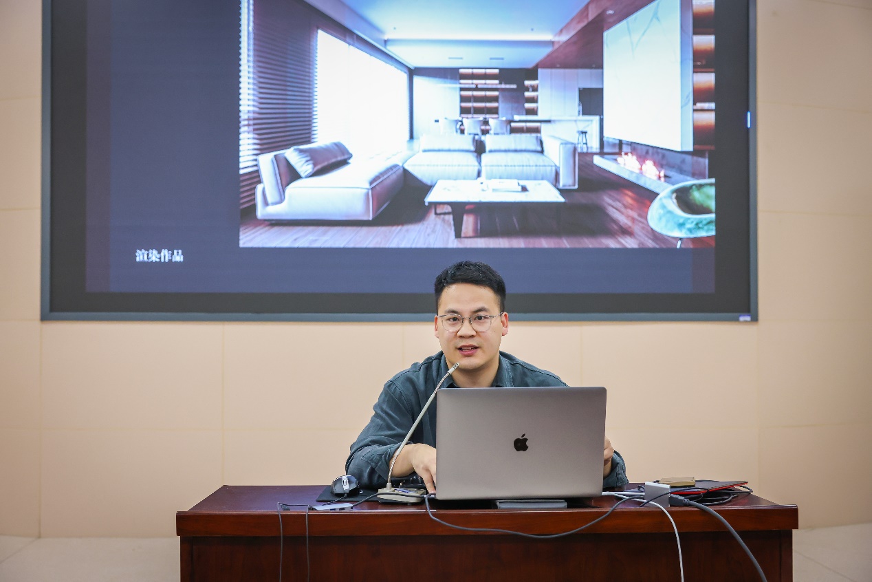 会上,赵一飞以亲身经历和从业体验为切入点,通过风趣幽默的语言与学弟、学妹们分享了本专业的就业现状和前景。随后,他就学习设计的具体方法、各类设计软件对比、软件应用与工作实践等方面,详细阐述了行业与软件应用的关联,并现场用CAD、Photoshop、sketchup、3Dmax等软件演示了室内设计从项目接触到设计方案完成的全流程。最后针对同学们关于AI技术是否会取代设计行业、软件所需系统配置等问题进行详细解答。三个半小时的时间在不知不觉中飞快流逝,会议在热烈的掌声中圆满结束。
