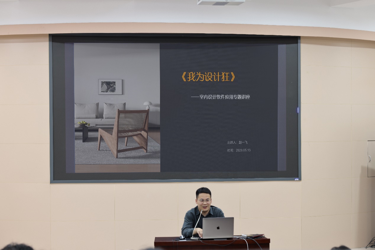 为加强风景园林与艺术学院设计类学子设计表达技能,提升软件实践操作的能力,明确环境设计专业就业方向与目标,我院特邀艺术系2016届优秀毕业生赵一飞于5月13日上午在300人报告厅举办“我为设计狂——室内设计软件应用”专题讲座。我院2020级、2021级环设专业学生和部分艺术系教师参加,会议由张云飞老师主持。
