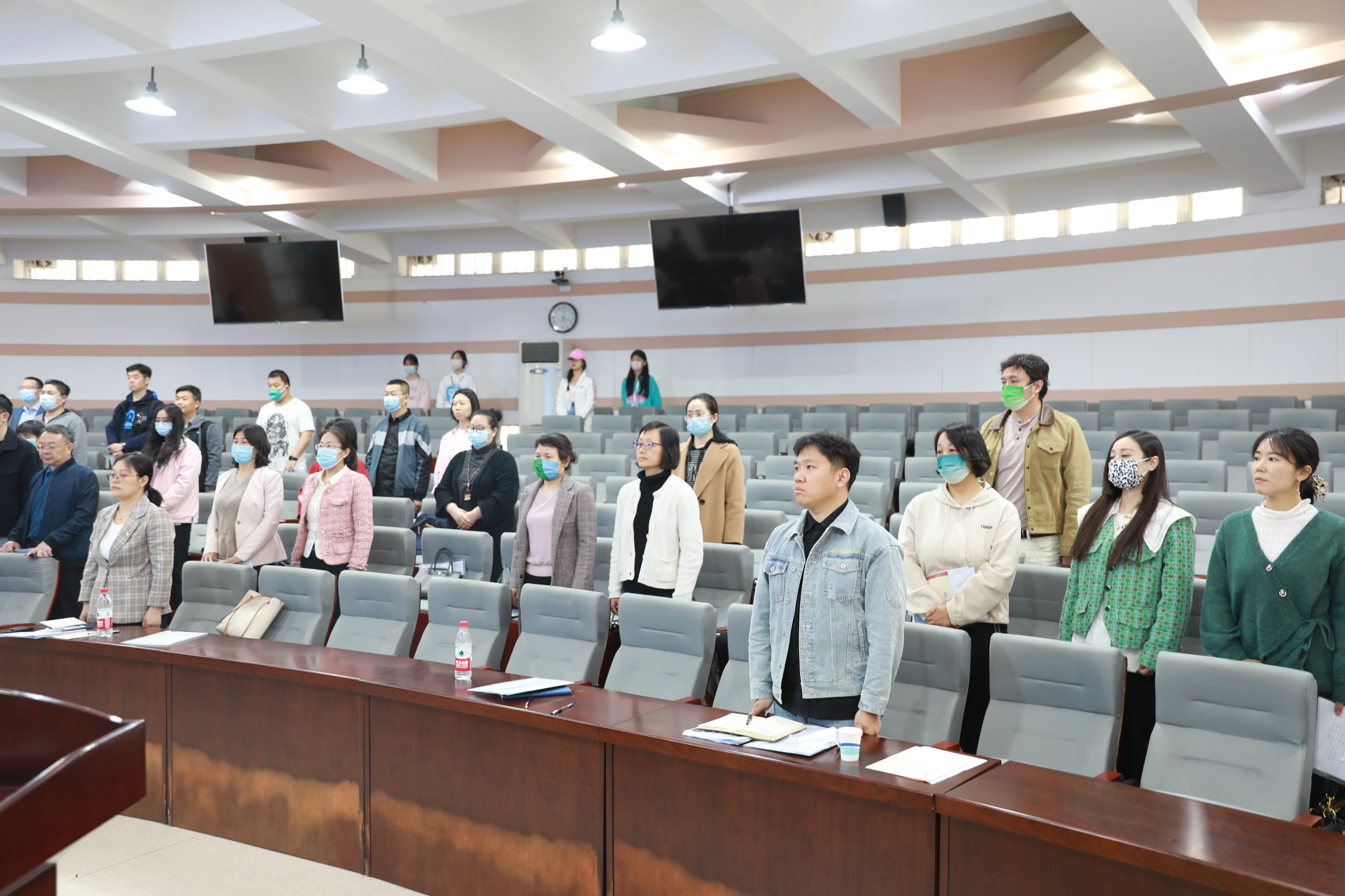 最后,全体成员起立奏唱校歌,在慷慨激昂的歌声中,大会落下帷幕。