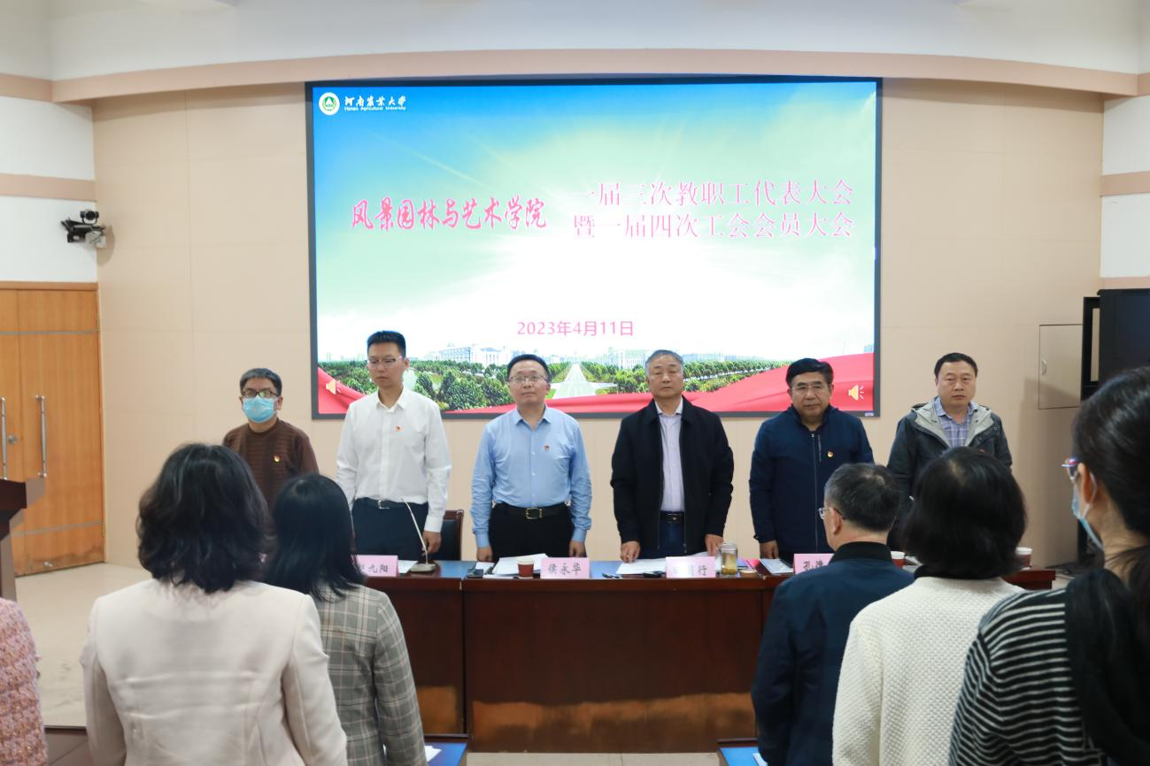 4月11日下午,我院在文化路校区300人报告厅召开一届三次教职工代表大会暨一届四次工会会员大会。院党委书记侯永华、院长田国行、院党委副书记赵九阳,副院长孔德政、阴予兴、李永华,及35位教代会暨工会代表参加会议。会议由赵九阳主持。
