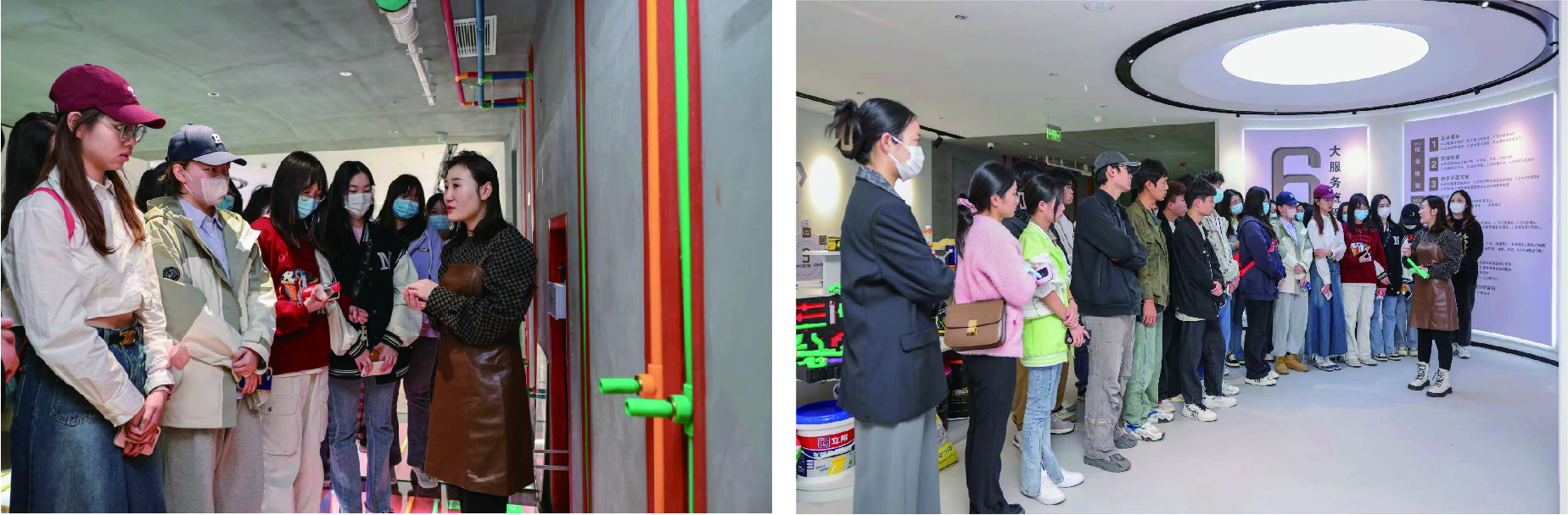 授牌仪式结束后,公司各部门工作人员带领老师和同学进行参观。通过对木工工艺、瓦工工艺、电工工艺的详细讲解,同学们对硬装工艺有了更多的领悟;通过参观各式各样的样板间及家电板材,使同学们对装修风格及装饰材料有了更多认识。同学们纷纷表示,通过考察学习,对施工流程以及就业方向有了更加明确的认知,增加了对社会的全面了解,丰富了社会实践经验,提高了自身的综合素养。