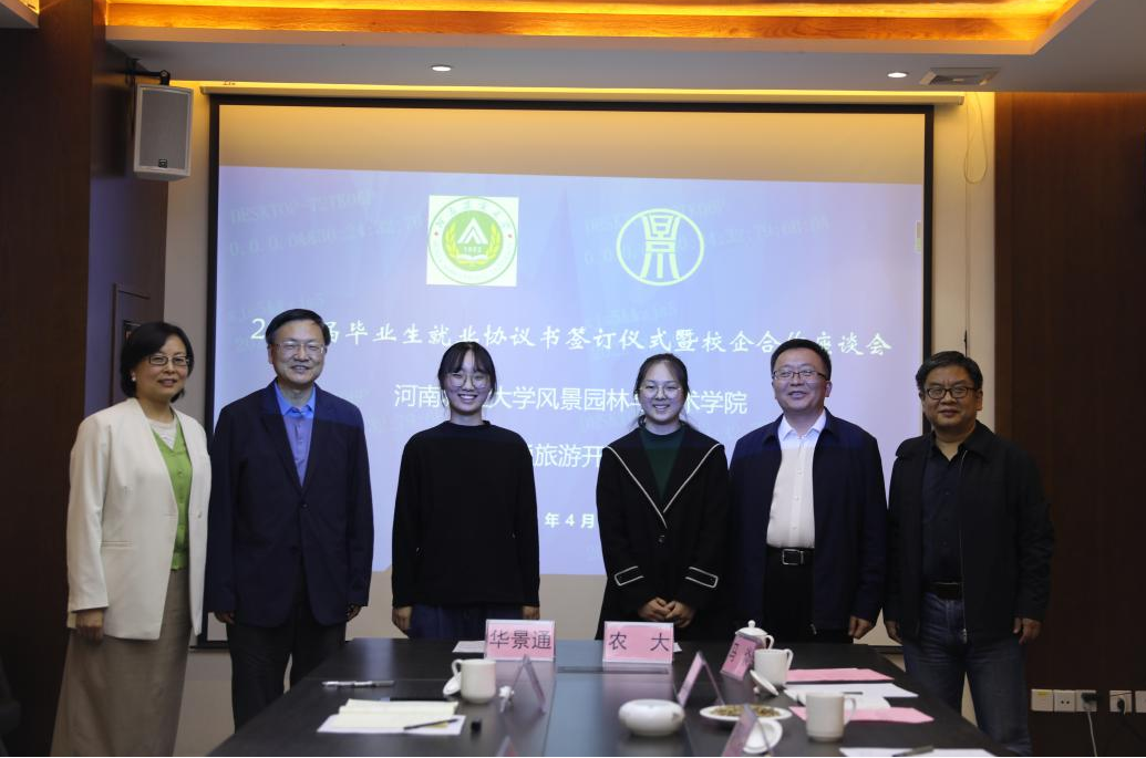 4月30日下午,院党委书记侯永华带队到浙江华景通旅游开发有限公司郑州分公司开展“访企拓岗促就业”暨院企合作洽谈。浙江华景通旅游开发有限公司负责人,院党委副书记胡明忠,副院长阴予兴,规划系主任雷雅凯、教师代表及正在公司实习实训的毕业生参加活动。
