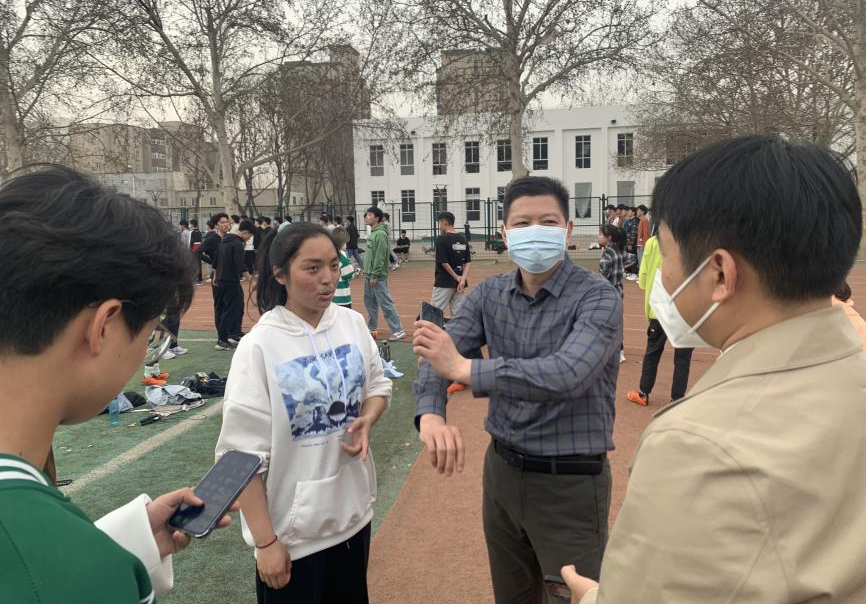 3月15日下午,我院党委副书记胡明忠、团委副书记李雨澍、团委老师马焱前往文化路校区田径场看望我院春训运动员。