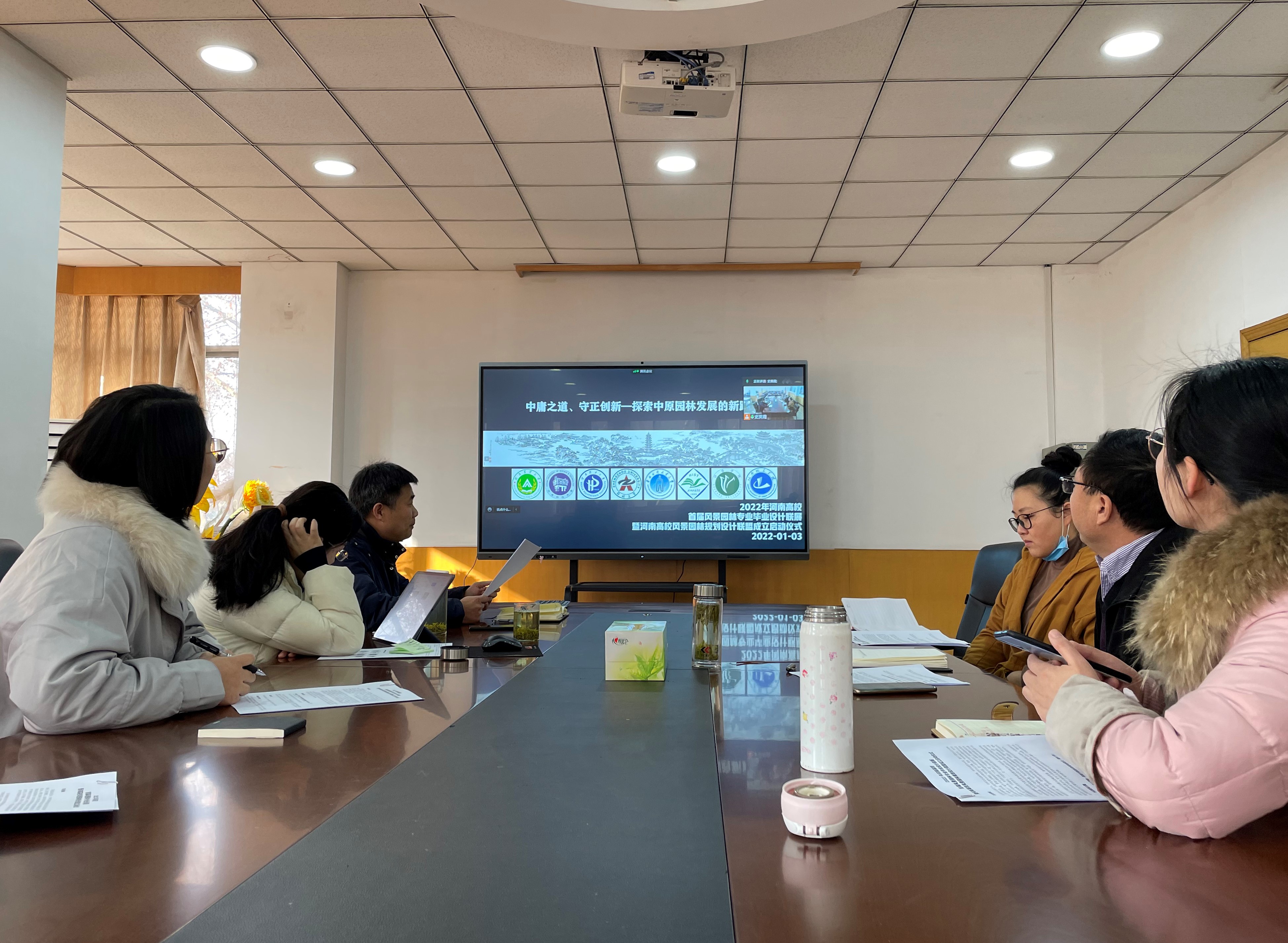 1月3日上午,2022年河南高校首届风景园林专业毕业设计联展暨河南高校风景园林规划设计联盟成立启动仪式于河南农业大学风景园林与艺术学院举行。会议采用线上及线下相结合的方式,由河南农业大学、郑州大学、河南科技大学、河南科技学院、河南理工大学、华北水利水电大学、许昌学院、河南城建学院八所高校共同参与,学院副院长李永华、风景园林系主任刘保国、副系主任张淑梅、规划系副系主任郭楠及教师代表参会。会议由刘保国主任主持。