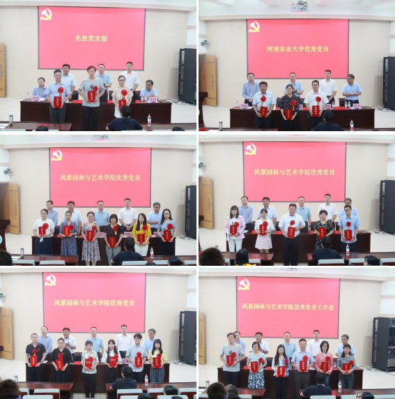 副院长孔德政宣读《中共河南省委高校工委关于表彰委管高校优秀共产党员、优秀党务工作者和先进基层党组织的决定》、中共河南农业大学委员会《关于学校党建工作第三批“样板支部”培育遴选结果的公示》、中共河南农业大学委员会〔2021〕129号《关于表彰优秀共产党员、优秀党务工作者和先进基层党组织的决定》和《风景园林与艺术学院关于表彰2020-2021学年优秀党员和优秀党务工作者及先进党支部的决定》。
