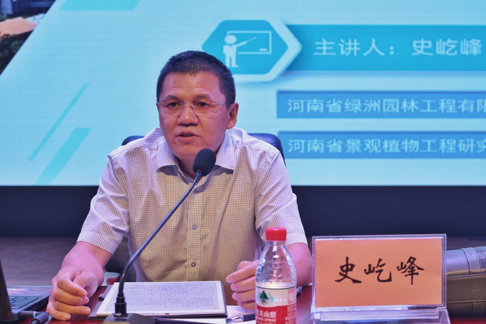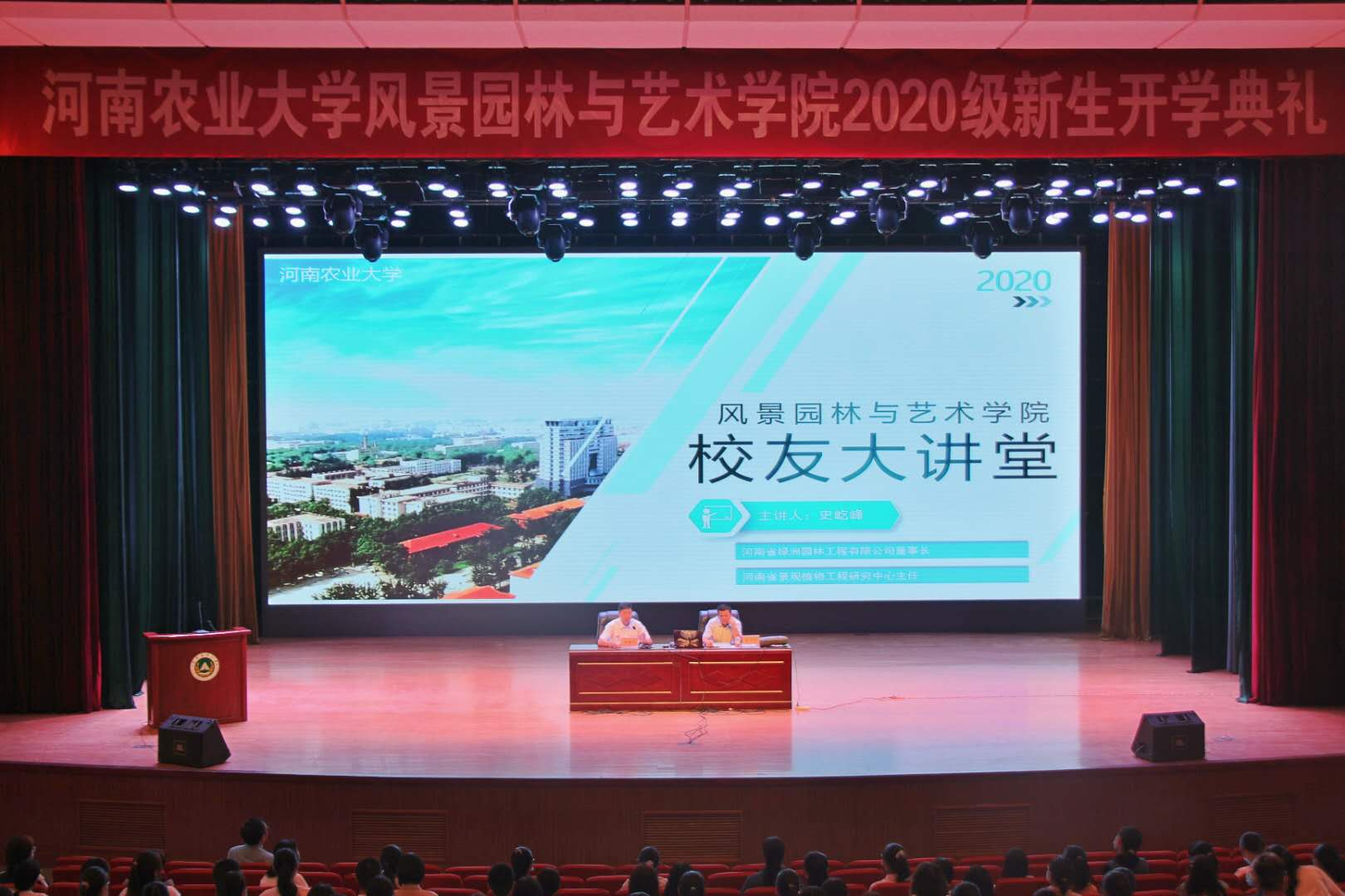 9月21日上午,我院邀请1992级园林专业杰出校友、河南绿洲园林工程有限公司董事长、河南省景观植物工程研究中心主任、国家“园林绿化高级工程师”史屹峰老师在文化路校区大礼堂为2020级新生作“校友大讲堂”第一讲。院领导、院团委老师和新生班主任等参加报告会。报告会由院党委副书记胡明忠主持。