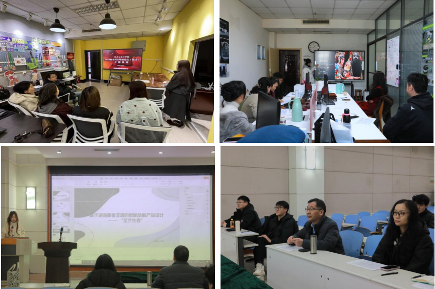 答辩现场氛围热烈而有序,学生围绕选题背景、创意来源、设计框架、技术路径及预期成果展开阐述,环境设计专业的空间设计方案兼具美学价值与实用功能,产品设计专业的产品创意充满巧思与人文关怀。评审老师们秉持严谨负责的态度,认真倾听每位学生的汇报,针对部分设计方案中存在的思路不够清晰、实践路径不够具体等问题,老师们结合自身教学与实践经验,提出细化调研方向、优化设计细节、强化文化赋能等针对性建议,帮助学生理清创作思路。