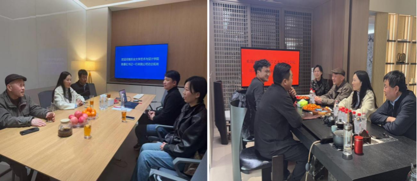 公司负责人侯开雨、方丹、刁大帅等人对学院一行的到访表示热烈欢迎。他们纷纷回顾求学经历,分享个人成长经历,详细介绍了公司发展历程、业务布局及人才需求规划,并展示了公司项目团队及成功研发销售案例。交流中,双方都表达了深化校企合作、共同培育高素质设计人才的意愿;希望借助此次机会加强双方在人才培养、实习就业、项目研发等方面的深度合作。
