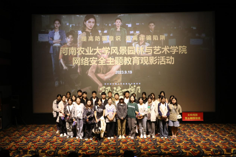 为进一步提升我院学生网络安全意识,筑牢防范电信网络诈骗思想防线,9月19日,我院于黄河路奥斯卡影城开展反诈电影《孤注一掷》观影活动,院正科级组织员李雨澍、23级辅导员周子涵出席,2023级全体新生参与活动。