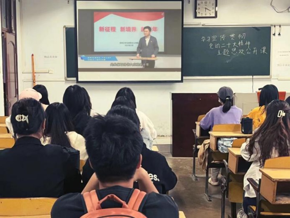 活动以班级为单位展开,由老师带领集体观看《学习宣传贯彻党的二十大精神主题思政公开课》。放映结束后,老师对课上内容进行回顾与讲解,并带动学生们以互动形式对学习内容做出分享与探讨。