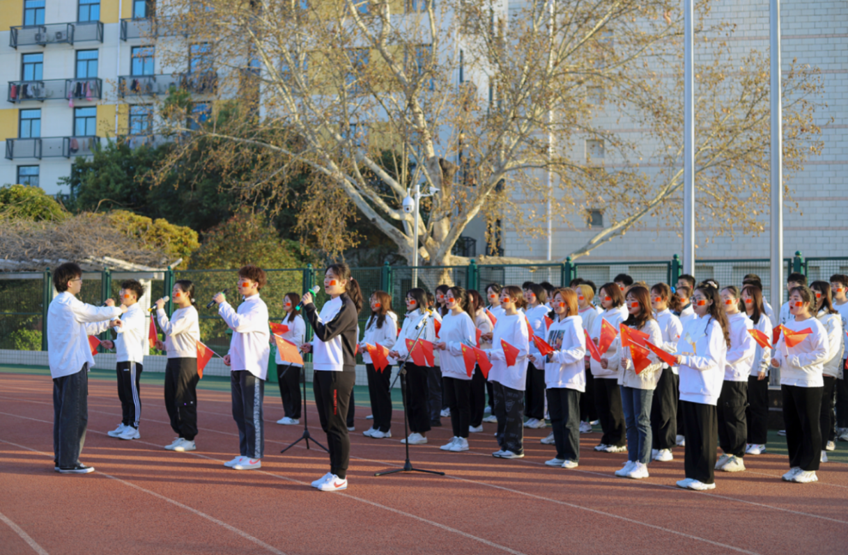 升旗仪式在全体师生合唱《红旗飘飘》和《绿色颂》的激昂歌声中结束。