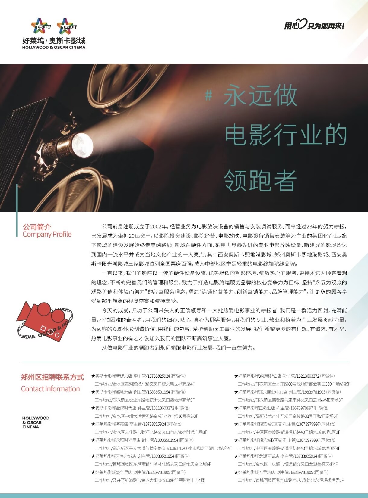 奥斯卡/好莱坞影城26届春季招聘——河南农业大学站